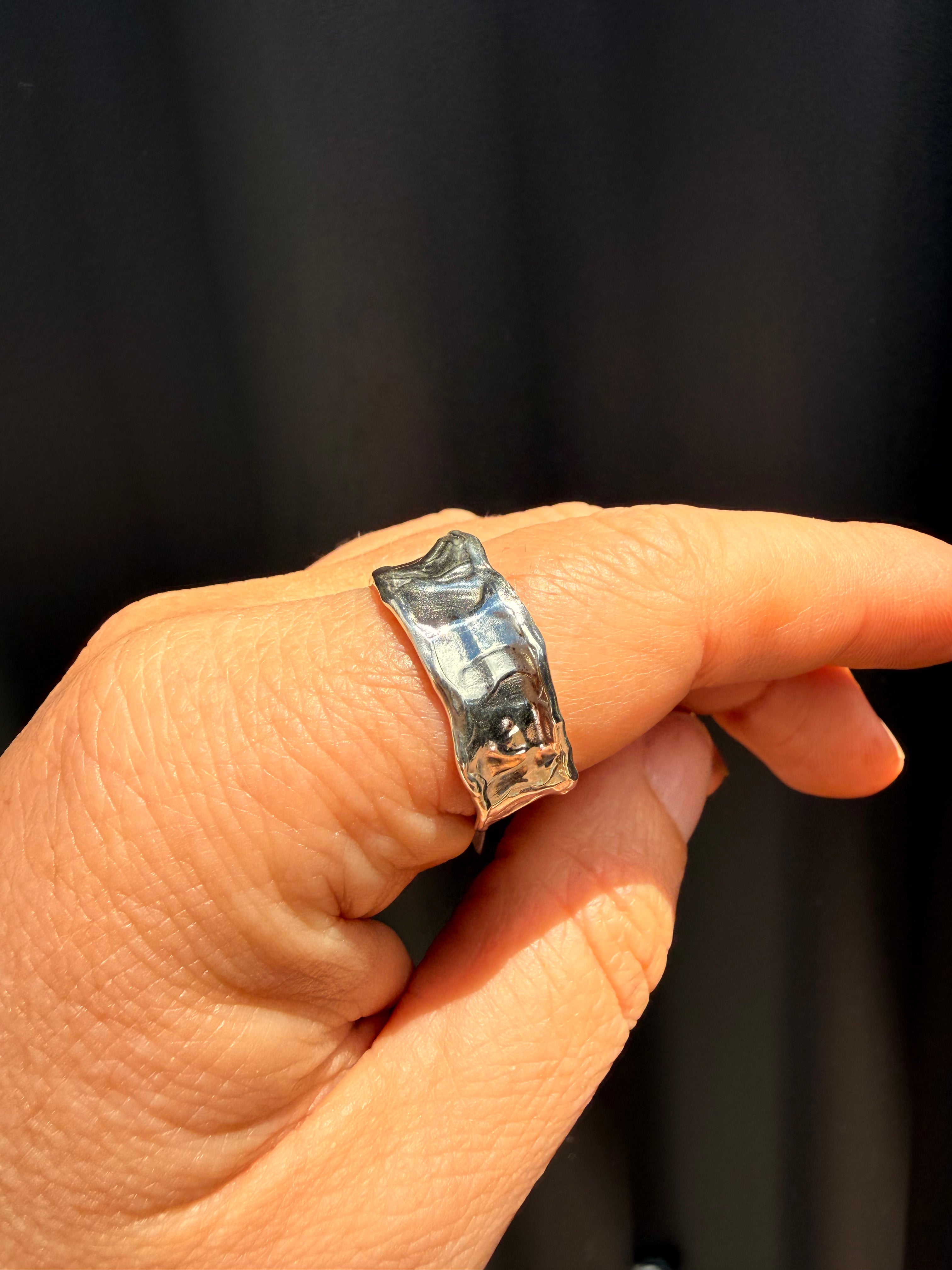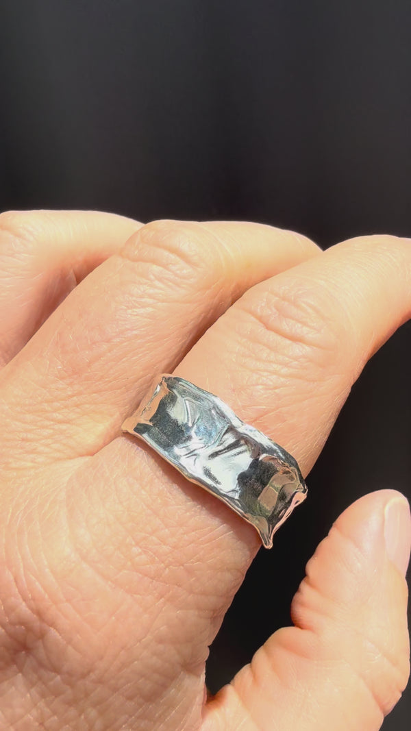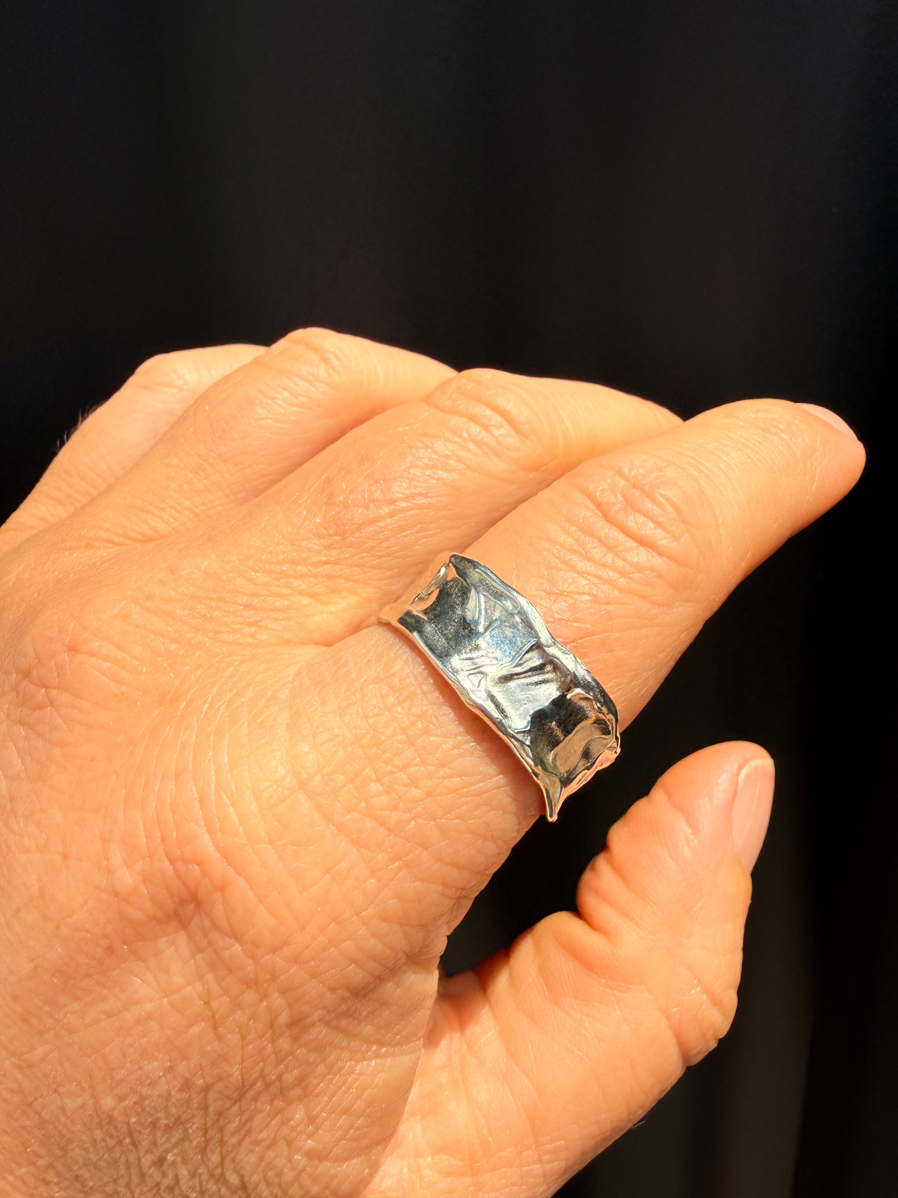 Freeform Sterling Silver textured band with undulating edges and highly polished finish is a perfect everyday ring, suitable for stacking or wearing independently for anyone.