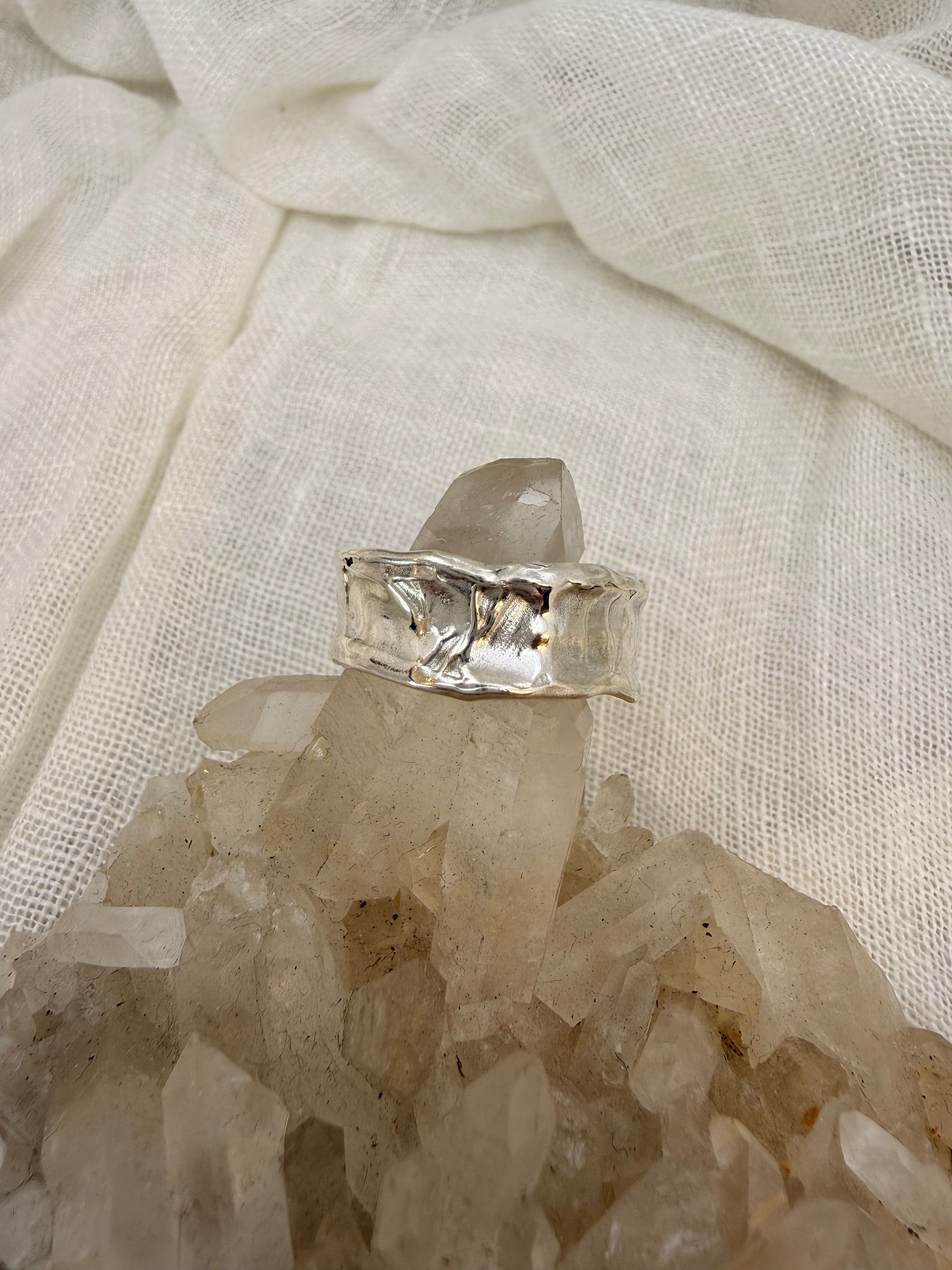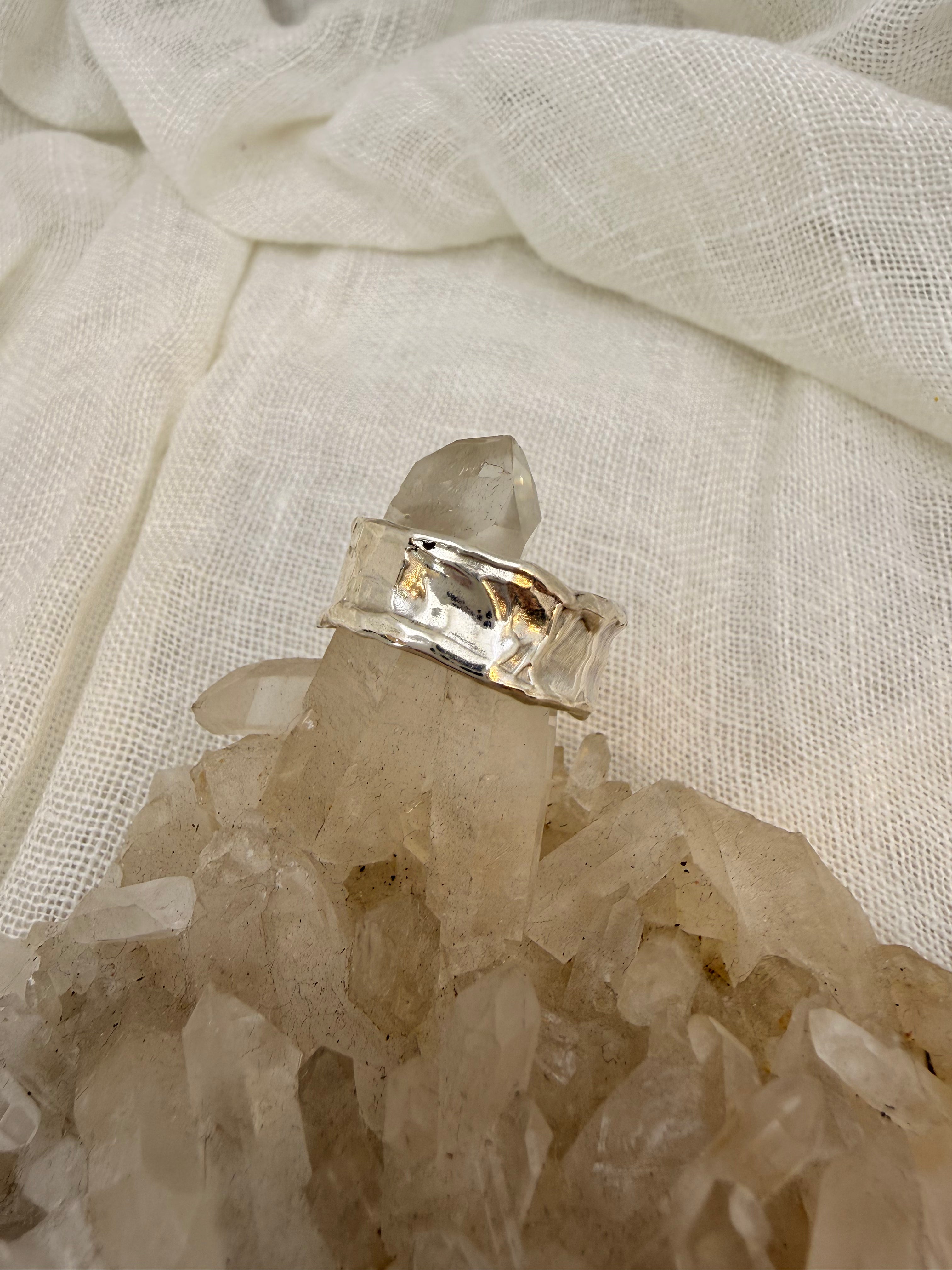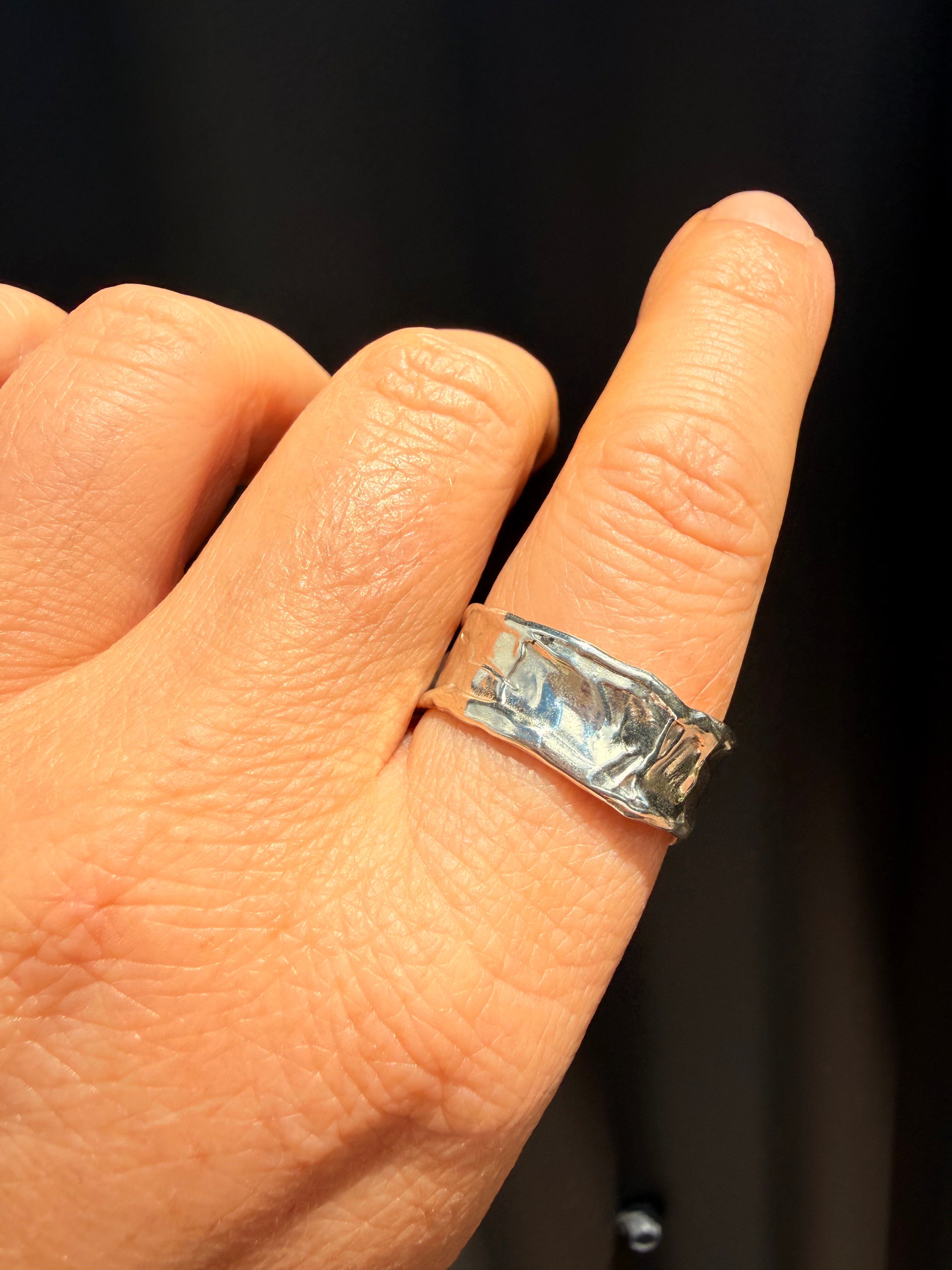 Freeform Sterling Silver textured band with undulating edges and highly polished finish is a perfect everyday ring, suitable for stacking or wearing independently for anyone.